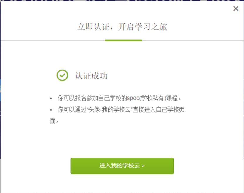 (4)点击学生认证,填写认证信息后点击“进入我的学校云”,便可以进入面向校内开设的课程进行学习。