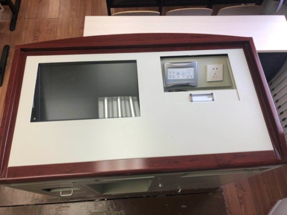 配备了多媒体讲台、计算机、投影机、音频功放、多媒体中控等设备,支持蓝牙无线扩声。